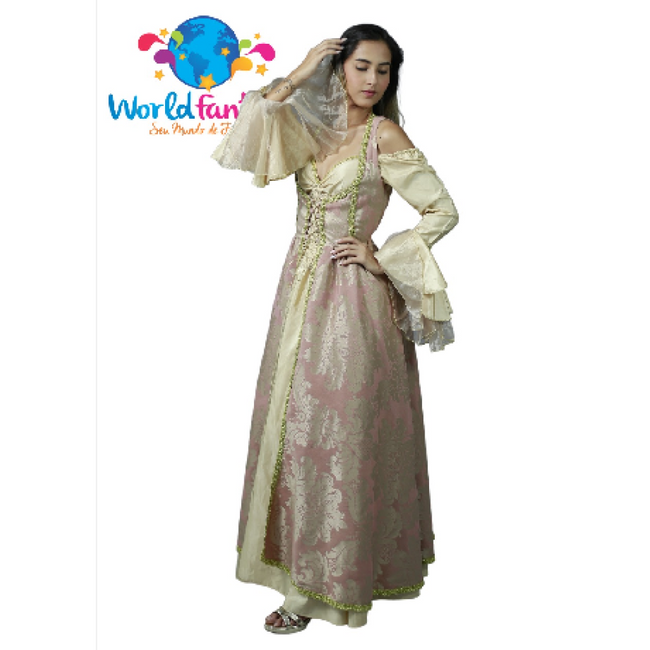 VESTIDO DE EPOCA ROSE COM DETALHES DOURADO